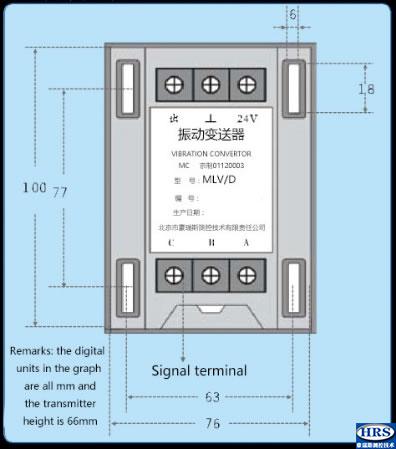 The transmitter is used with MLV series vibration velocity sensor. Monitor the absolute vibration of rotating machinery, such as bearings, chassis, rack vibration, and output vibration velocity (intensity), displacement value.
